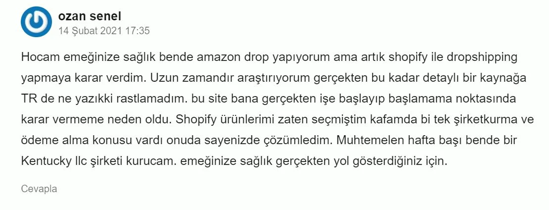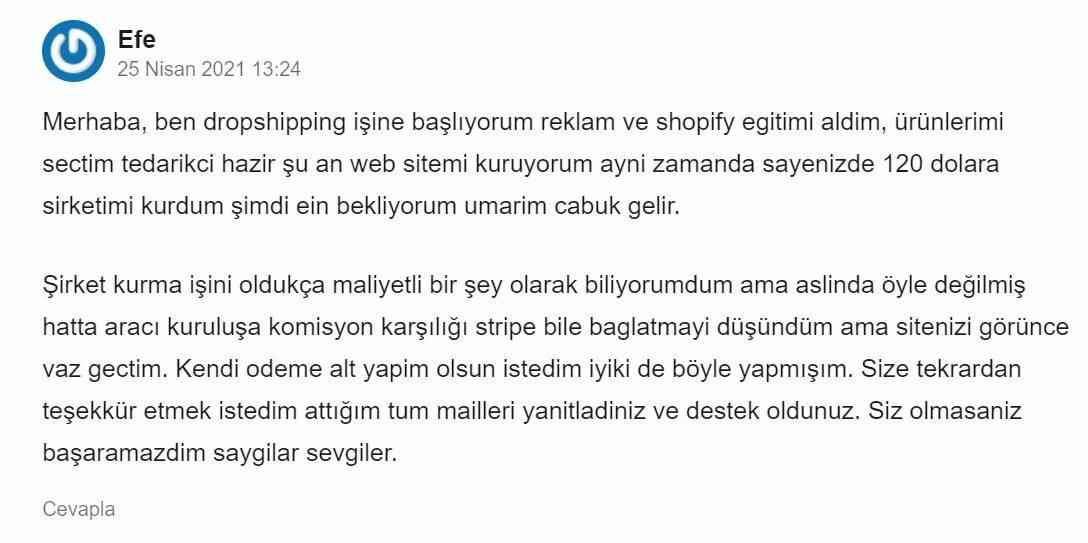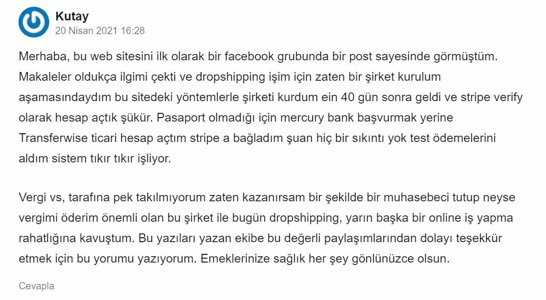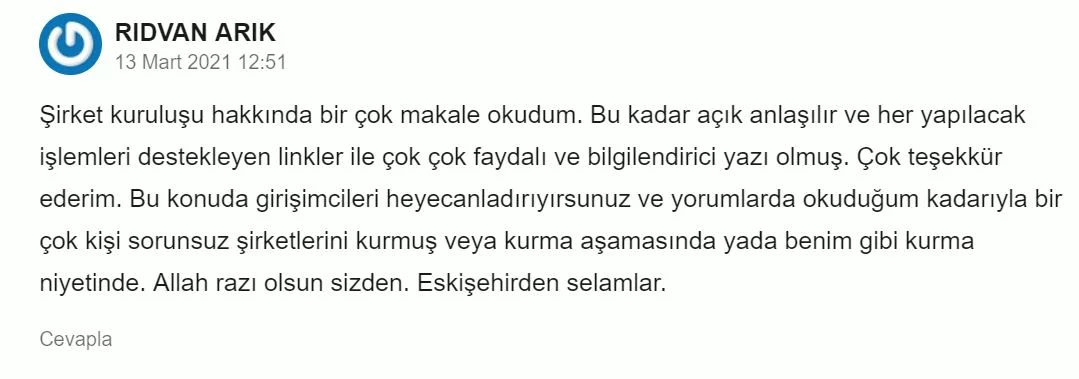 Şirketlerini kuran takipçilerin bu blogda yer alan konuların altına yaptıkları yorumlardan bazılarının ekran görüntülerini bu yazı içinde bulabilirsiniz.