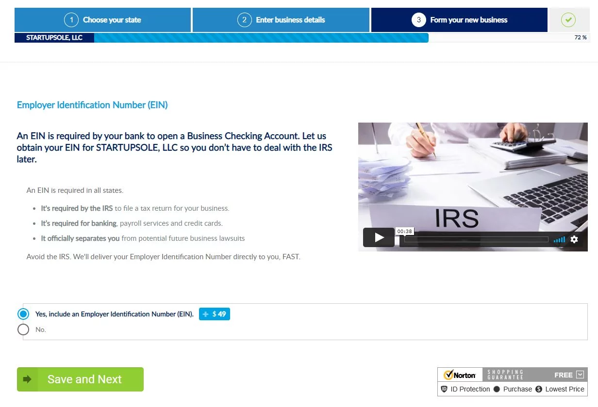 EIN numarasını Inc Authority üzerinden hizmet alarak 49$karşılığında sizin için almalarını isteyebilirsiniz. EIN (Federal vergi kimlik numarası) devlet tarafından ücretsiz verilen bir numaradır. Eğer 49$ ödemek yerine bu numarayı kendim almak istiyorum derseniz bu da mümkün. Amerika’ dan EIN Numarası Almak adlı rehberdeki adımları uygularsanız formunuzu doldurup kendiniz de başvuru yapabilirsiniz. No seçip bir sonraki adıma geçiyoruz.