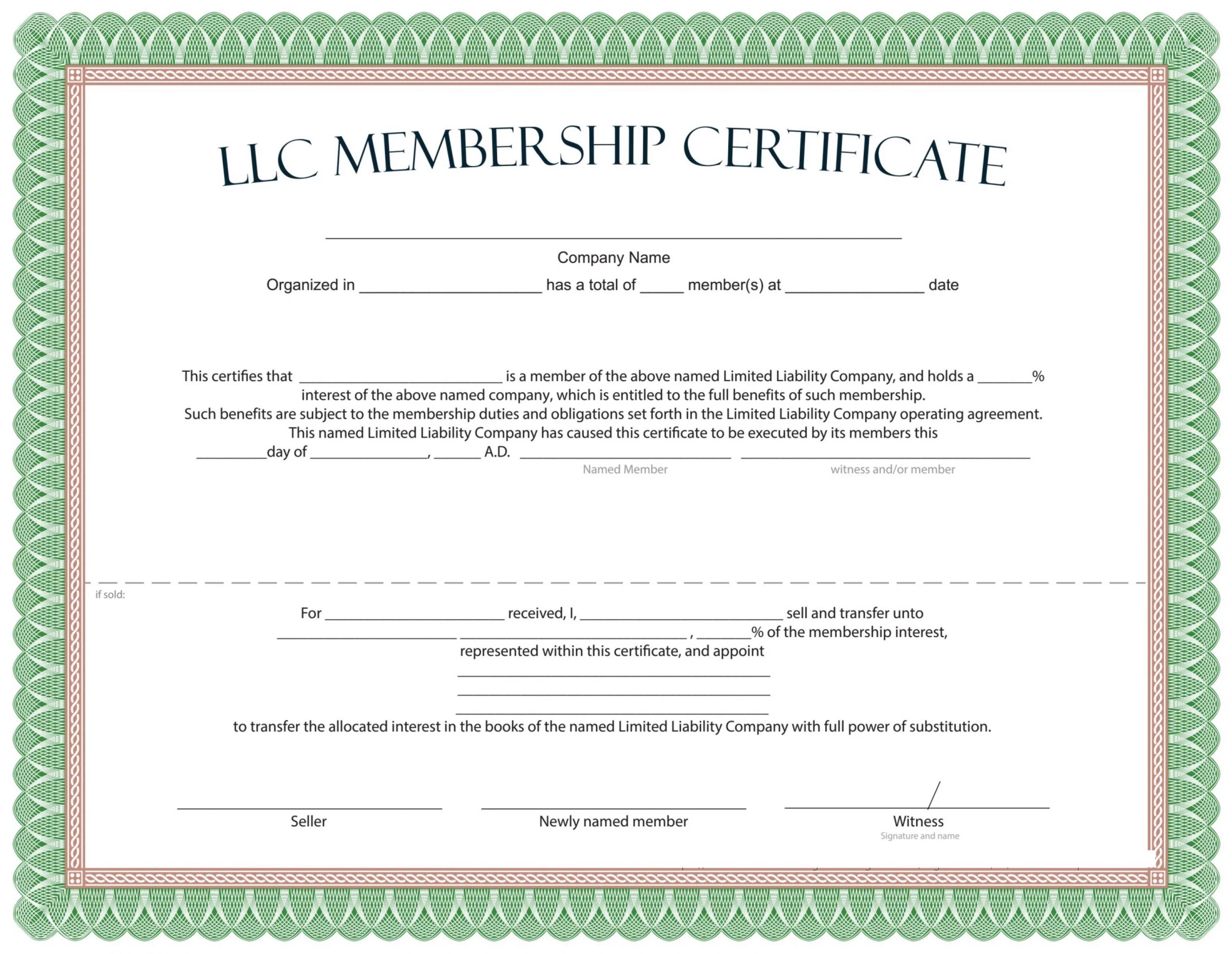 LLC Membership Certificate (Üyelik sertifikaları) LLC'lerde bulunan bireysel üyelerin şirketteki sahipliğini kayıt altına alan bir belgedir. (Örneğin bir şirketin hissedarlarına hisse senedi vermesi gibi).